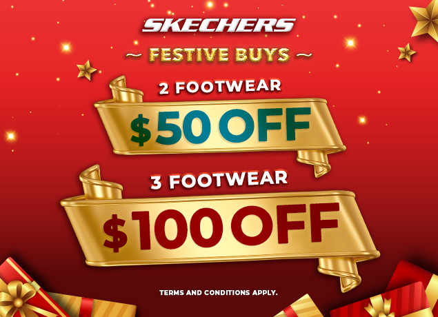 Bundle your favourites and enjoy bigger savings up to $100 off at Skechers #01-48.